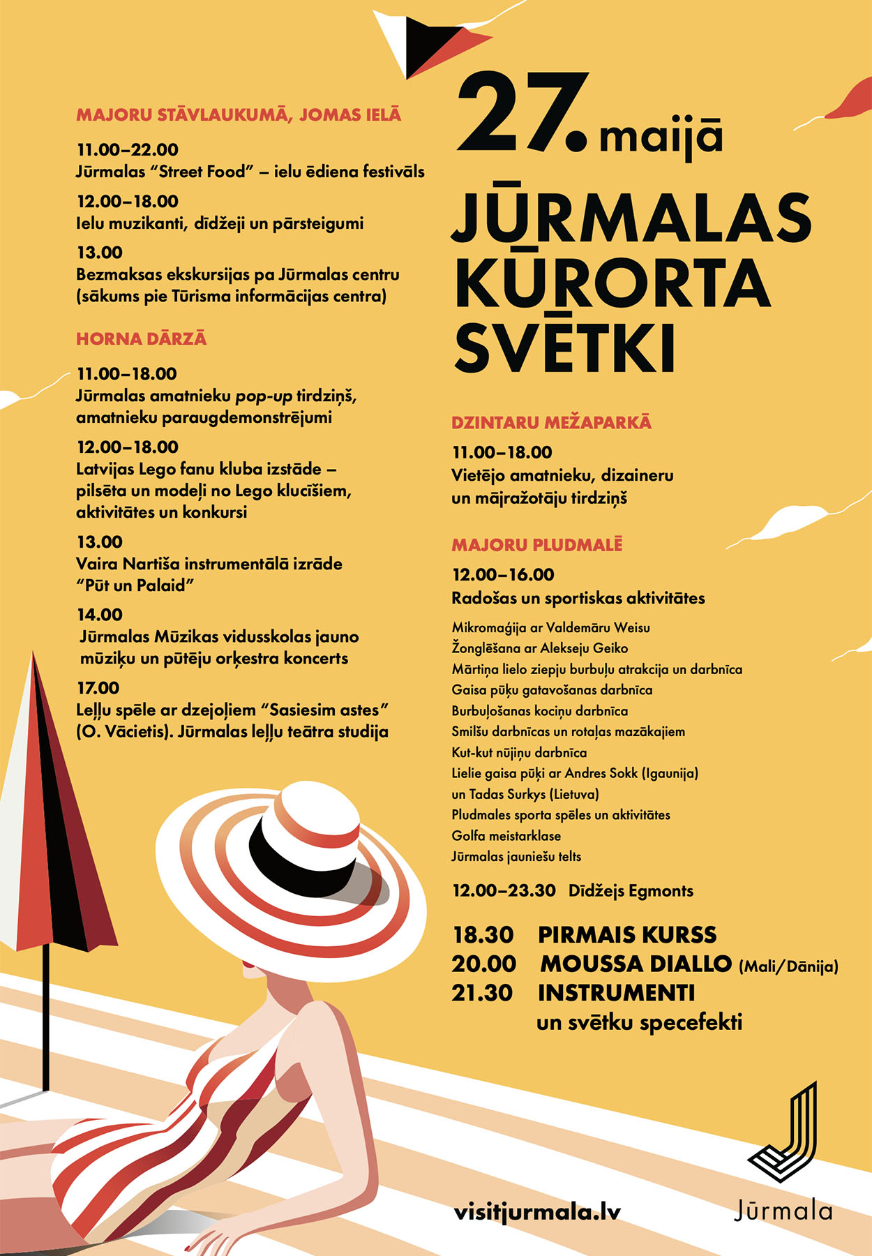 Majoru stāvlaukumā no plkst. 11.00 līdz 22.00 notiks ielu ēdienu festivāls “Street Food Jūrmala”, kur svētku atmosfērā varēs baudīt gardākās maltītes. Visas dienas garumā Jomas ielā skanēs mūzika, uzstāsies ielu muzikanti un būs dažādi pārsteigumi. Jūrmalas Tūrisma informācijas centrs svētku dienā rīkos bezmaksas ekskursijas pa Jūrmalas centru.